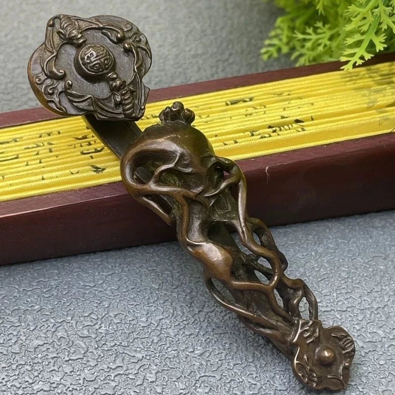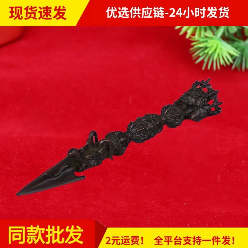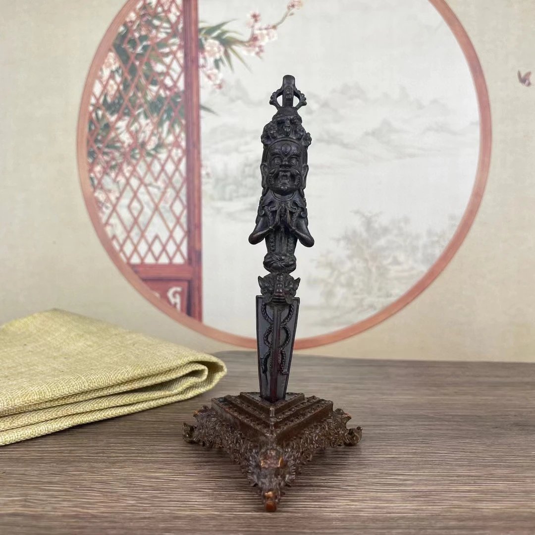 チベット伝用品密宗金属普巴杵馬頭明王金刚杵合金銅色大サイズ台座付き置物品