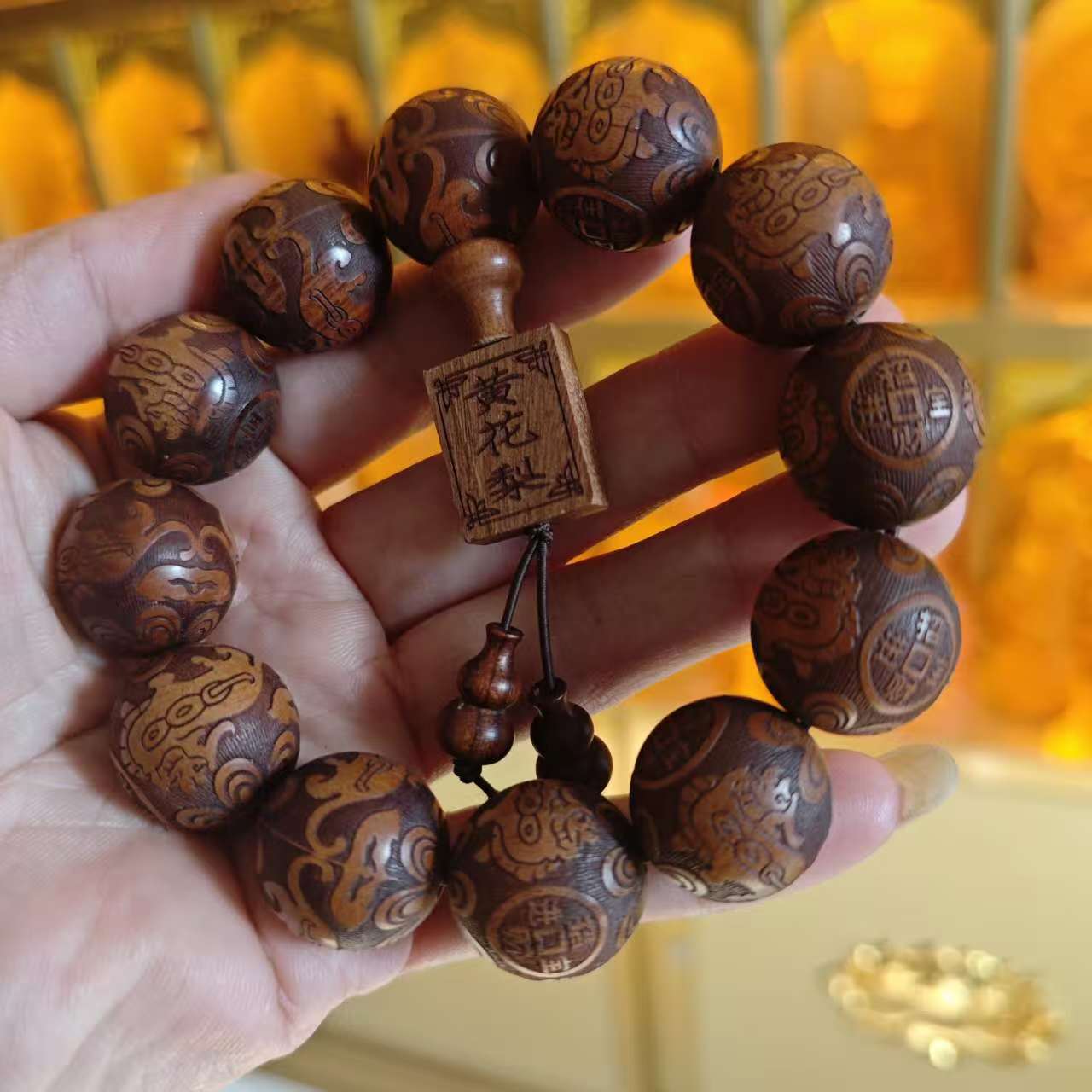 逸品黄花梨木彫刻仏珠民族風仏珠手串