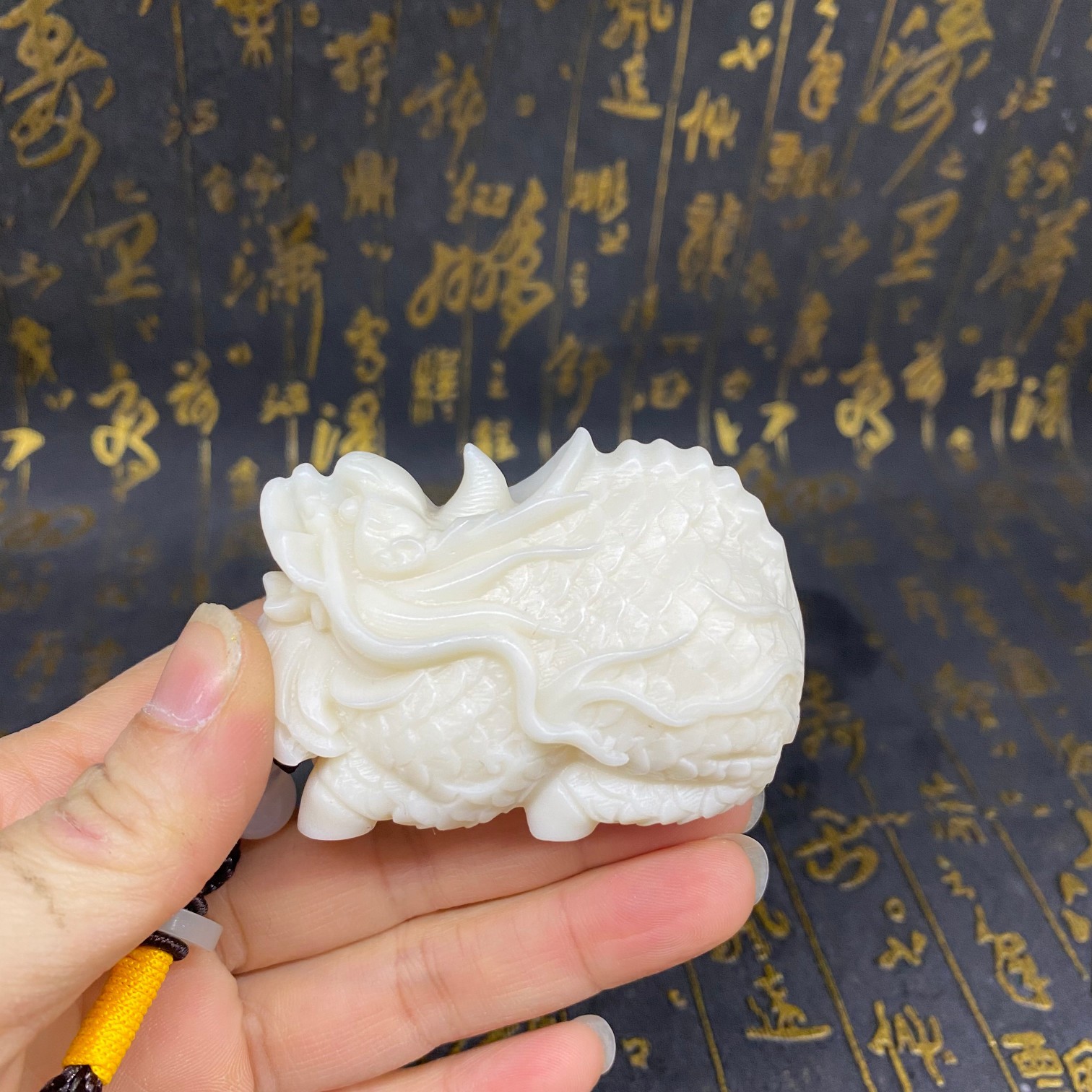 象牙の実の彫刻の長いひげの竜の魚の手は6.5*4.8*3.5cmを持ちます。