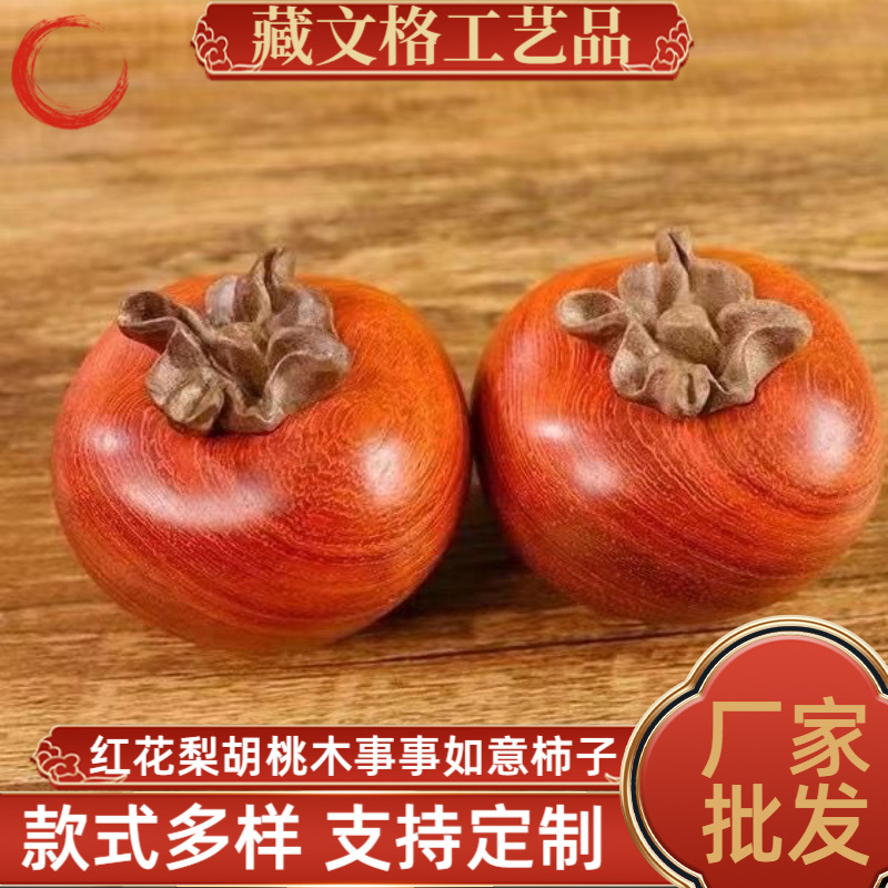 赤花梨胡桃木万事如意柿客間茶卓装飾置物木製彫刻文遊びハンドル