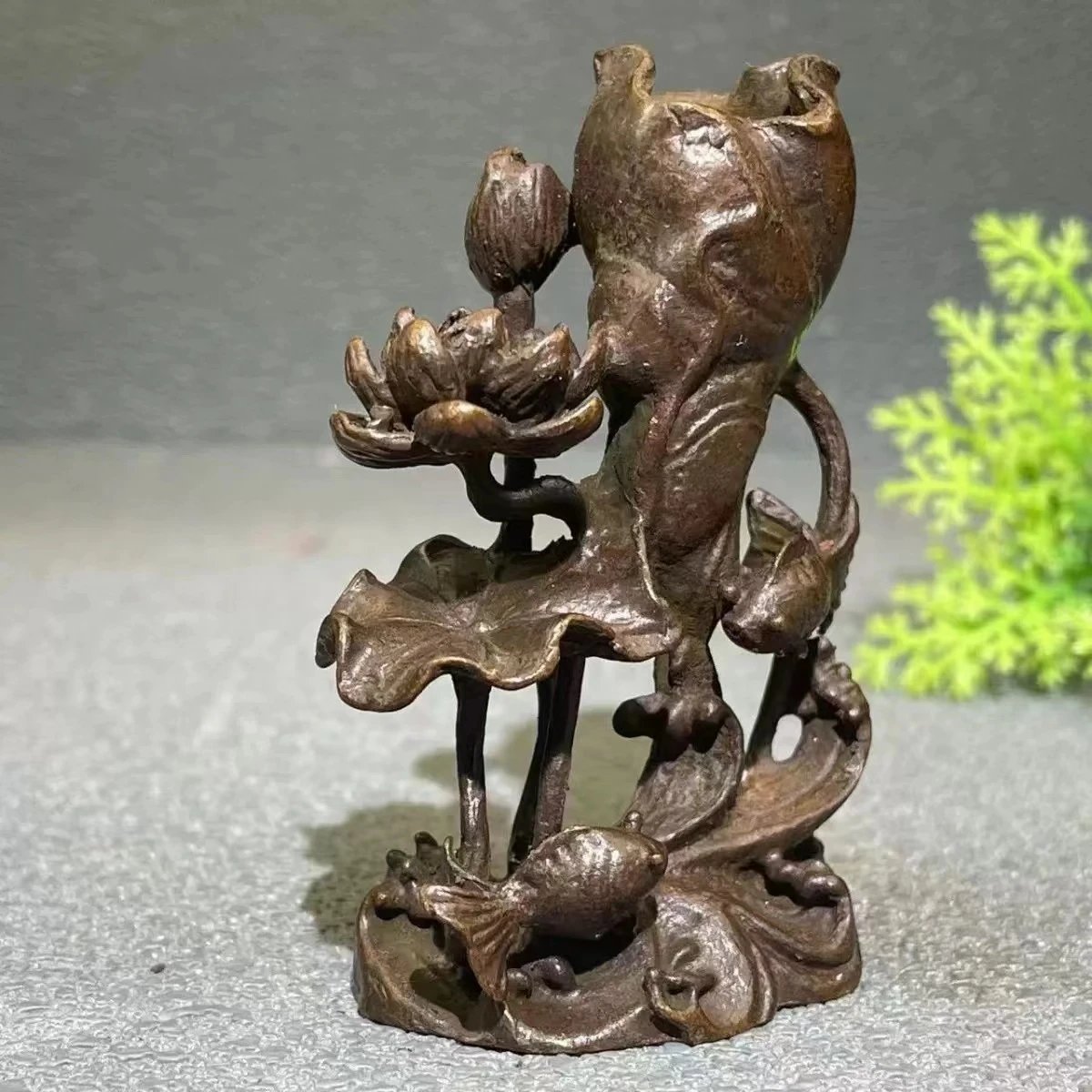 双魚蓮の葉蓮の線香金属置物レトロ蓮金魚線香挿し茶道茶台小香炉置物