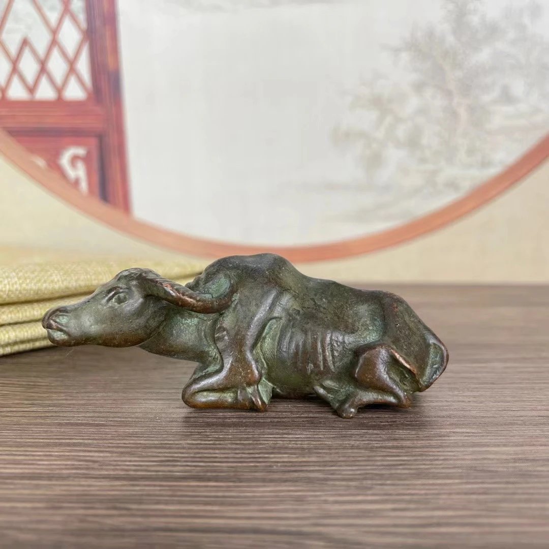 金属の中実の銅の子供の牛の寝牛の鎮紙の筆は茶を置いて肖の牛のデスクトップの置物をかわいがります。