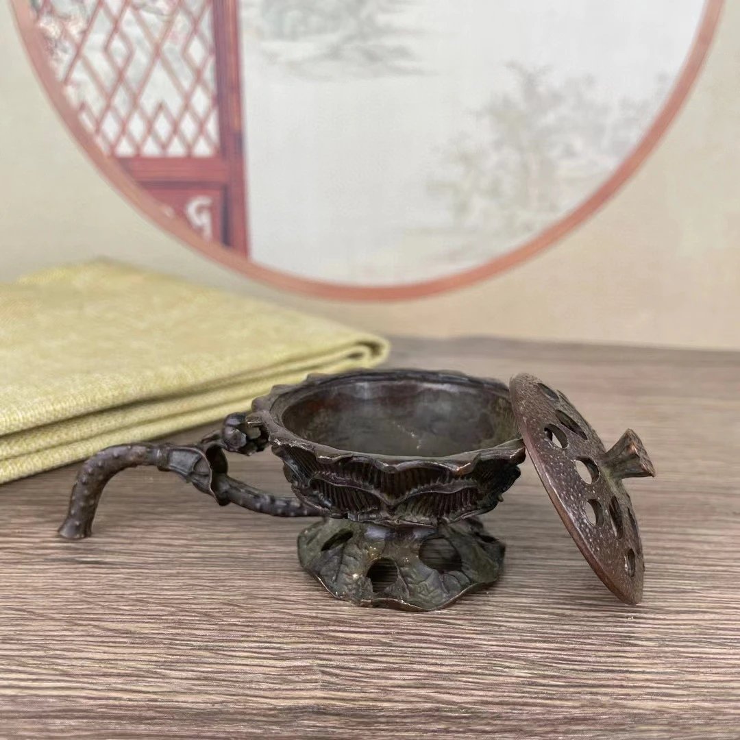 合金の透かし彫りの蓮の花の香炉は蓮の花のストーブの家庭の客間の茶室の香薫のストーブの檀の香の沈香のストーブの置物を持ちます。