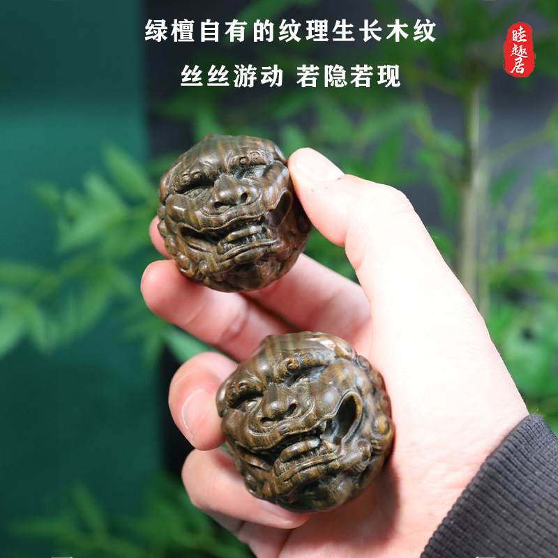 緑檀はライオンの文を目覚めさせて手を遊んでボールを握ります。