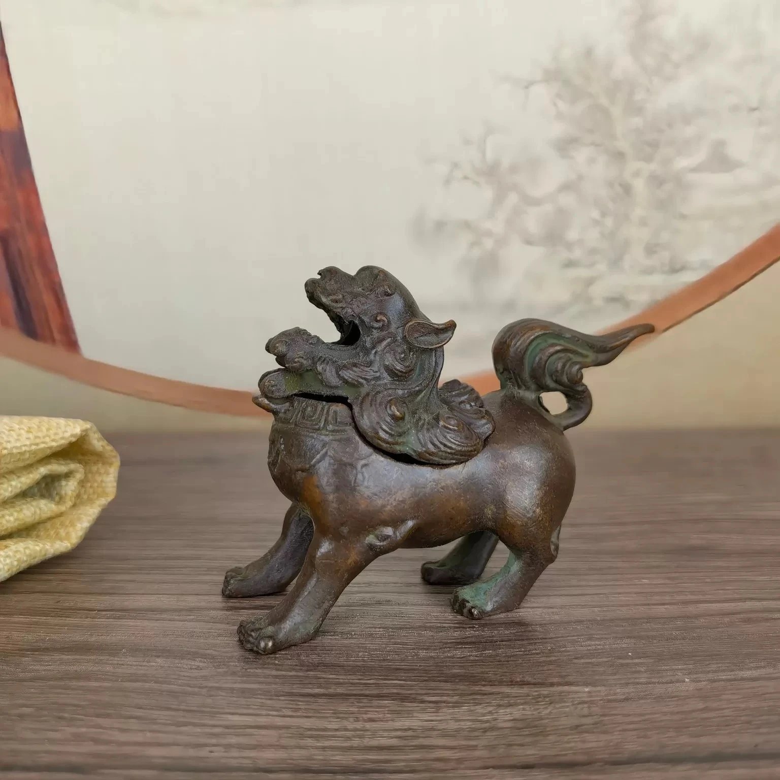 アンティークのライオンの香炉の置物家庭用アロマオーブンのテーブルの装飾金属工芸品の置物