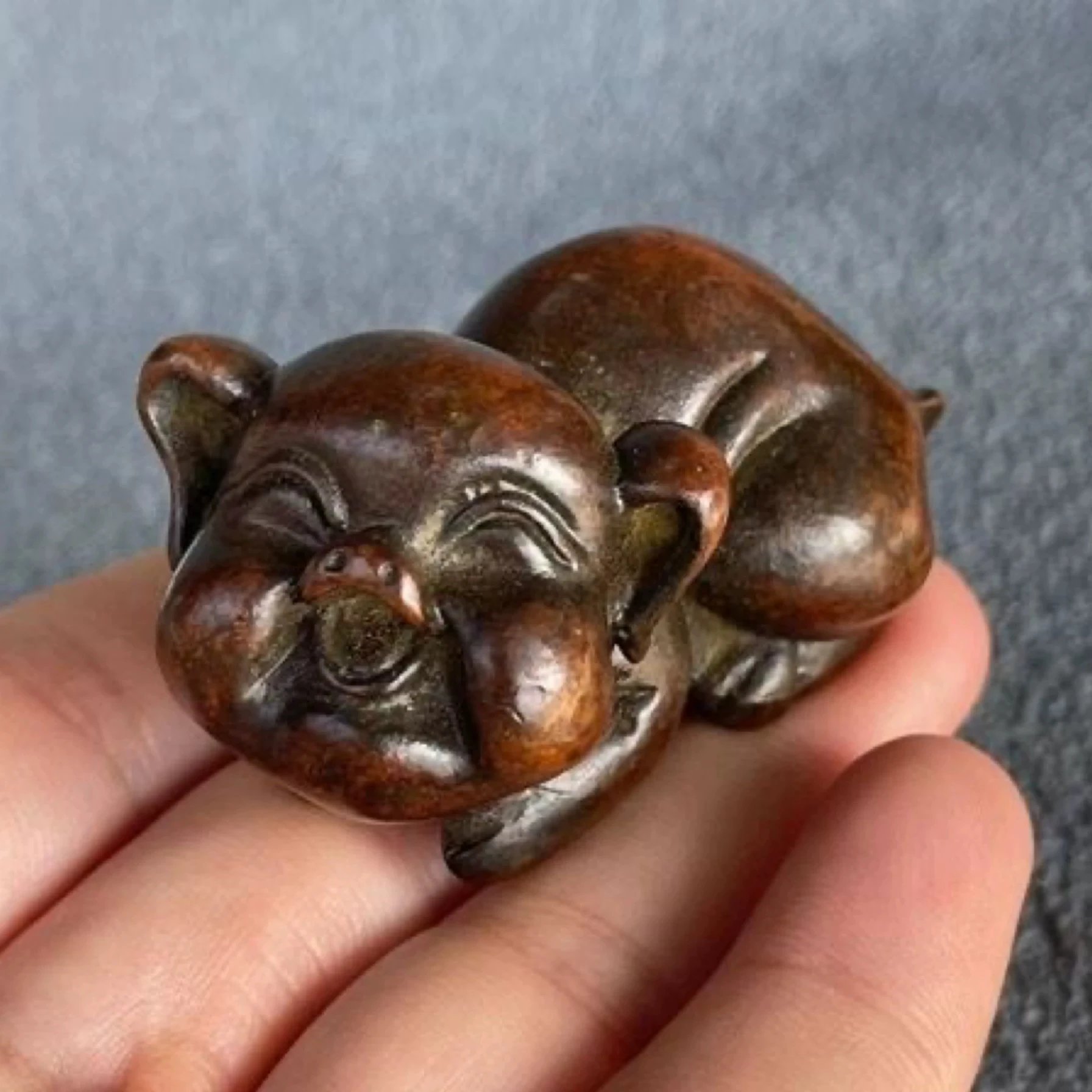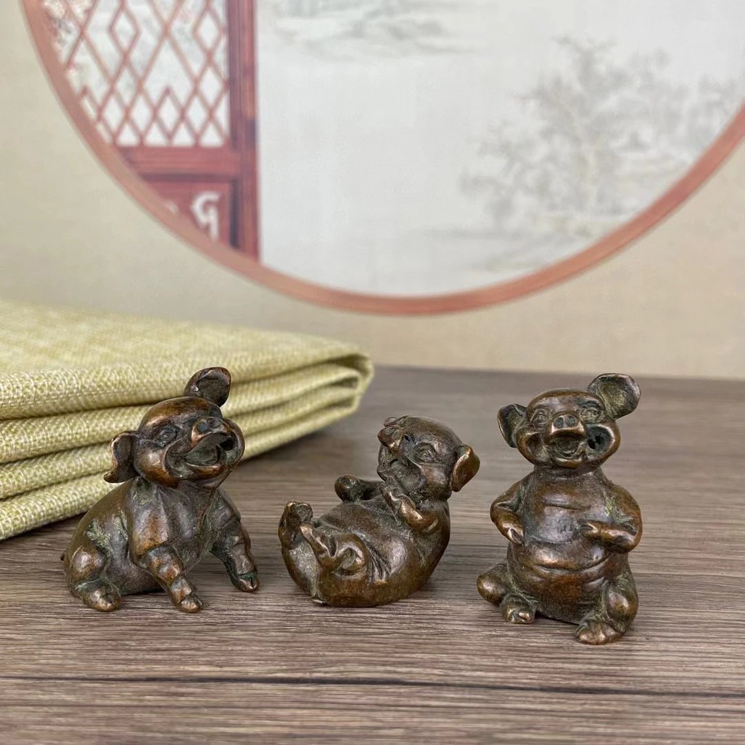 レトロな中実の包みの銅の鋳造のブタの置物の銅のブタの鎮紙の茶の寵愛の手の件は古い工芸品の金属の骨董品をまねます。