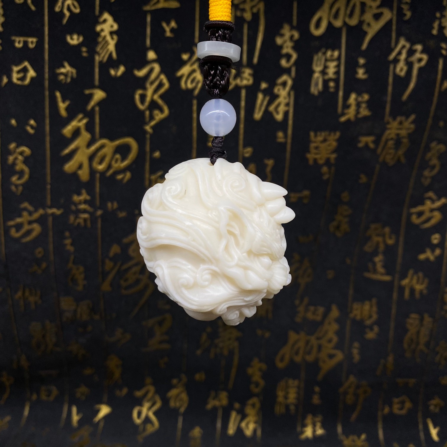 象牙の実の彫刻の長いひげの竜の魚の手は6.5*4.8*3.5cmを持ちます。