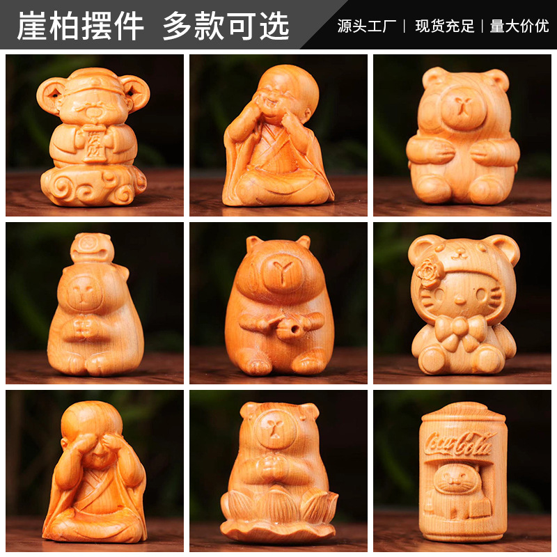 崖柏の手の取っ手の件は財神の漫画の木製の工芸品を迎えて財を集めて宝に入って開業して家の事務机の置物を供えます。