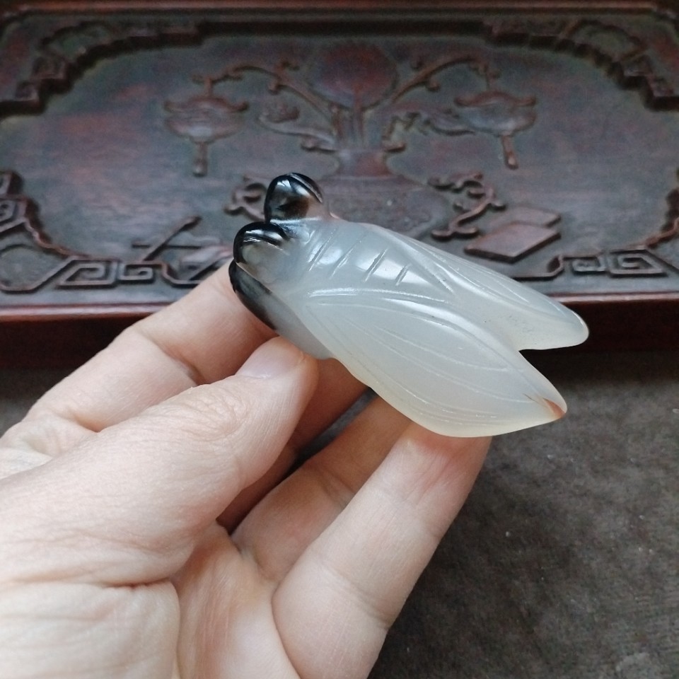 古遊コレクションの還流の美しい色の巧みな彫刻の白い瑪瑙の蝉のペンダントはおもちゃをさえずります。