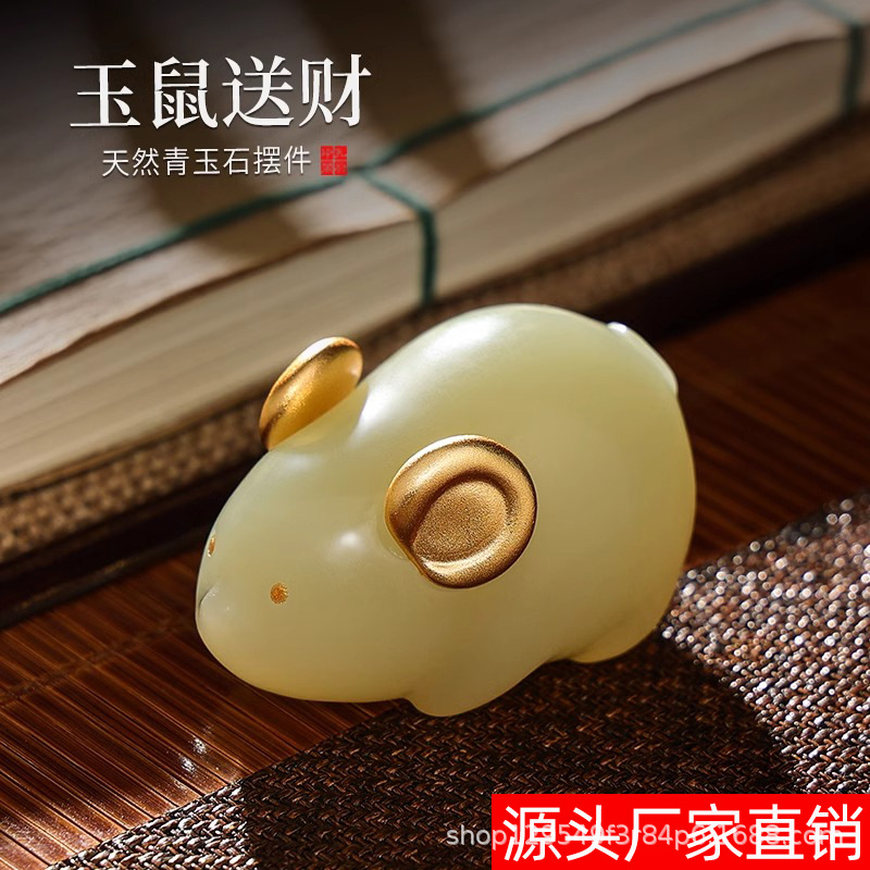 天然玉招財鼠置物創意酒棚装飾品リビングオフィスデスクホーム男性彼女プレゼント