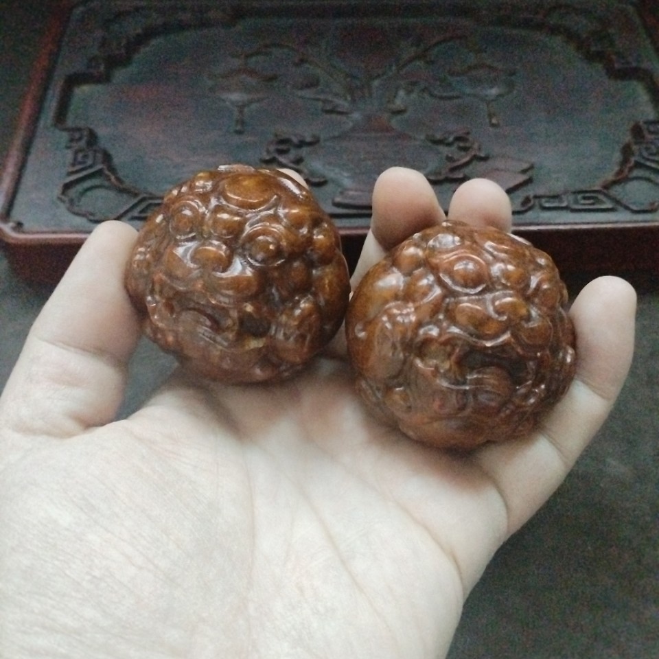 骨董コレクション還流老包糊玉獅子手球保健球老玉彫刻獅子マッサージ手球ペア