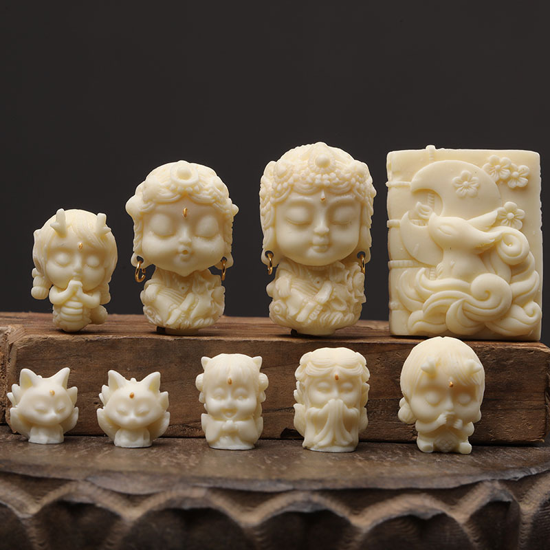 象牙果創意彫刻龍女白小狸白緑度母DIY手串直孔小ペンダントビーズカップル金