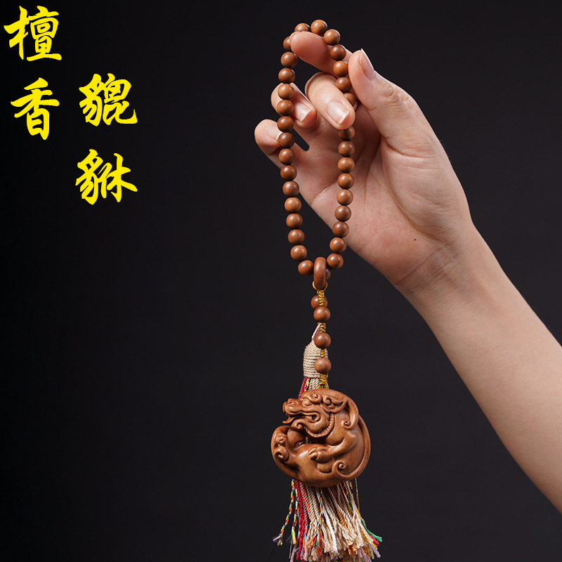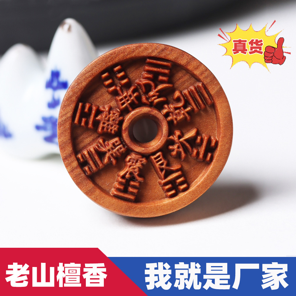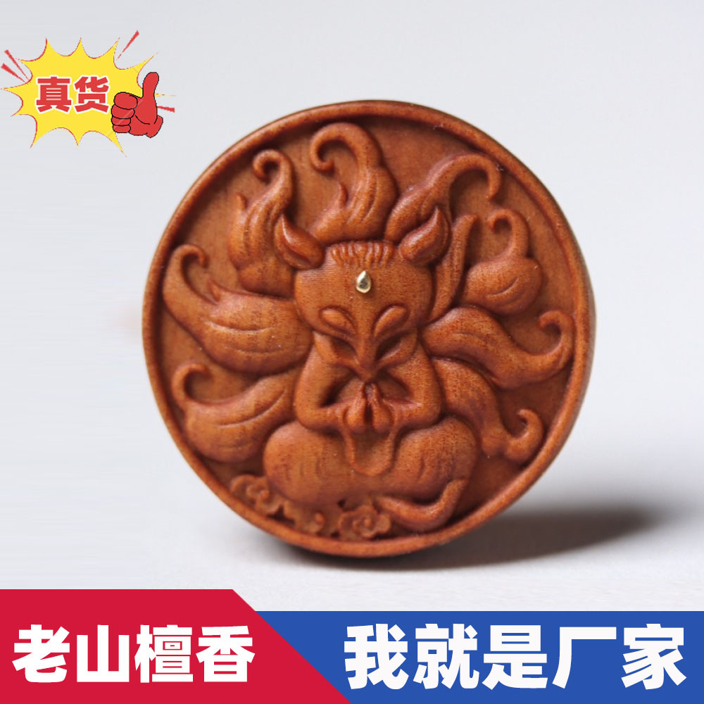 実体クロスボーダー卸売りインド天然老山檀ハンドル実木彫刻檀香お守り円形置物仏