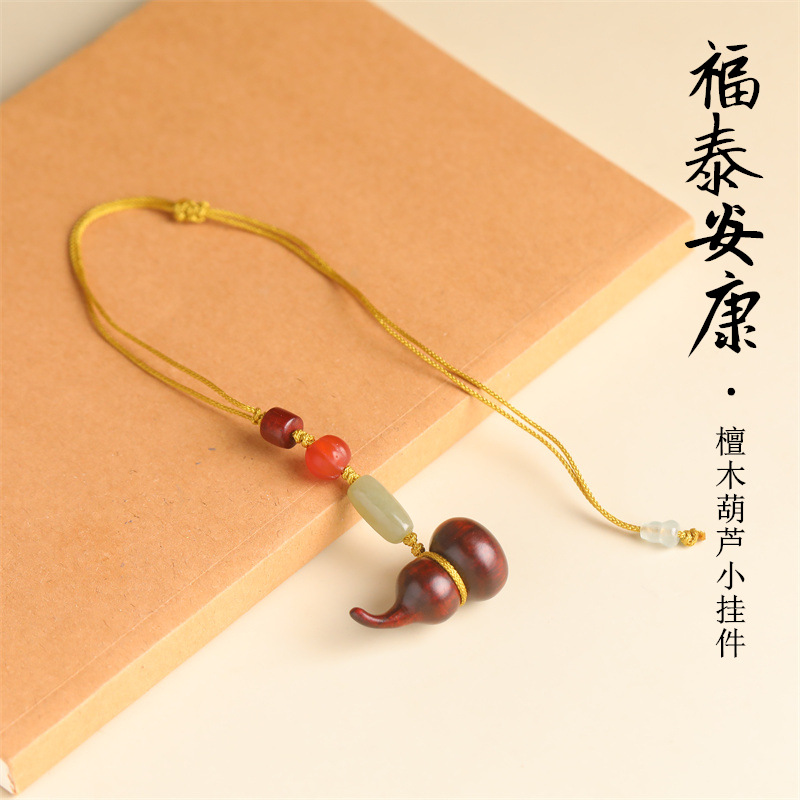 福泰紫檀木彫り瓢箪ハンドル部品赤木ストラップ圧襟バッグアクセサリー女性中国風創意古風