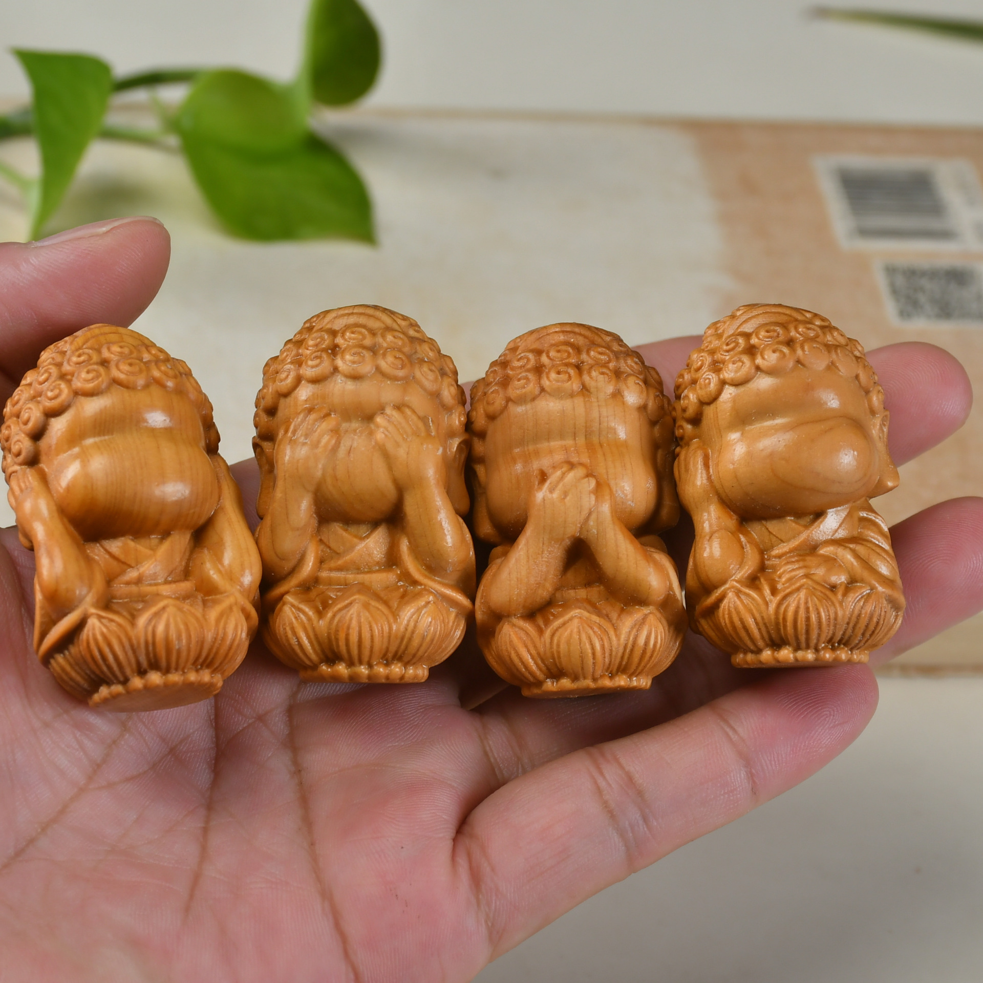 崖柏の木彫りの趣味の漫画の4つのハンドルの部品のペンダントのキーホルダーの手作りの部品の木製の工芸品の置物