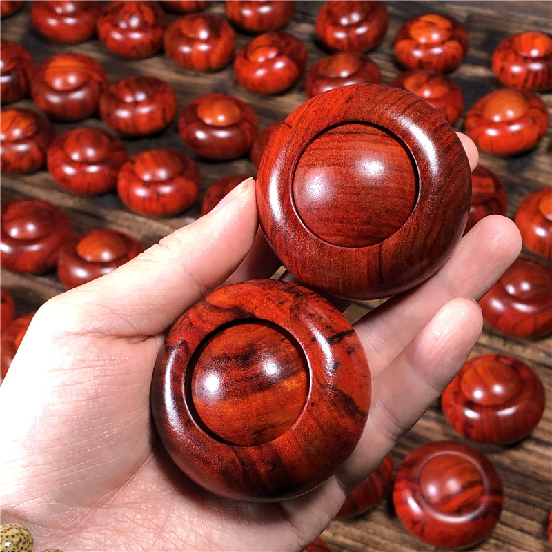 インドの小葉の紫檀の木の彫刻のクルミのフィットネスのボールのハンドボールの実木の保健のボールの手はボールの文を回転して遊んで贈り物をします。