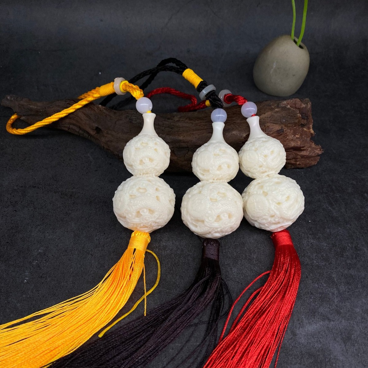 象牙果彫刻祥雲ひょうたん7*4*4cm吉祥如意入平安流蘇車載装飾品ストラップ