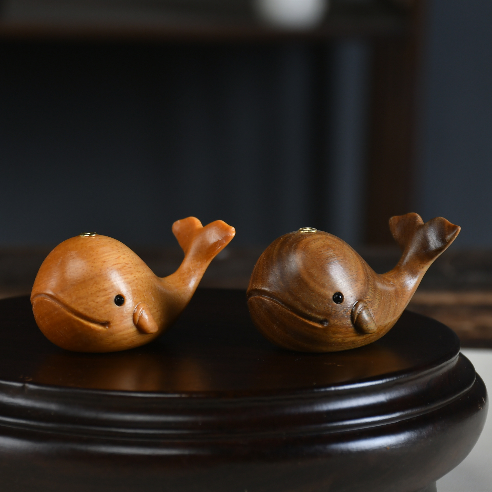創意的な木の小さいクジラの香りは紫檀木のデスクトップの小さい置物の緑檀木の室内の香薫の香座を挿して白檀の香りを卸売りします。