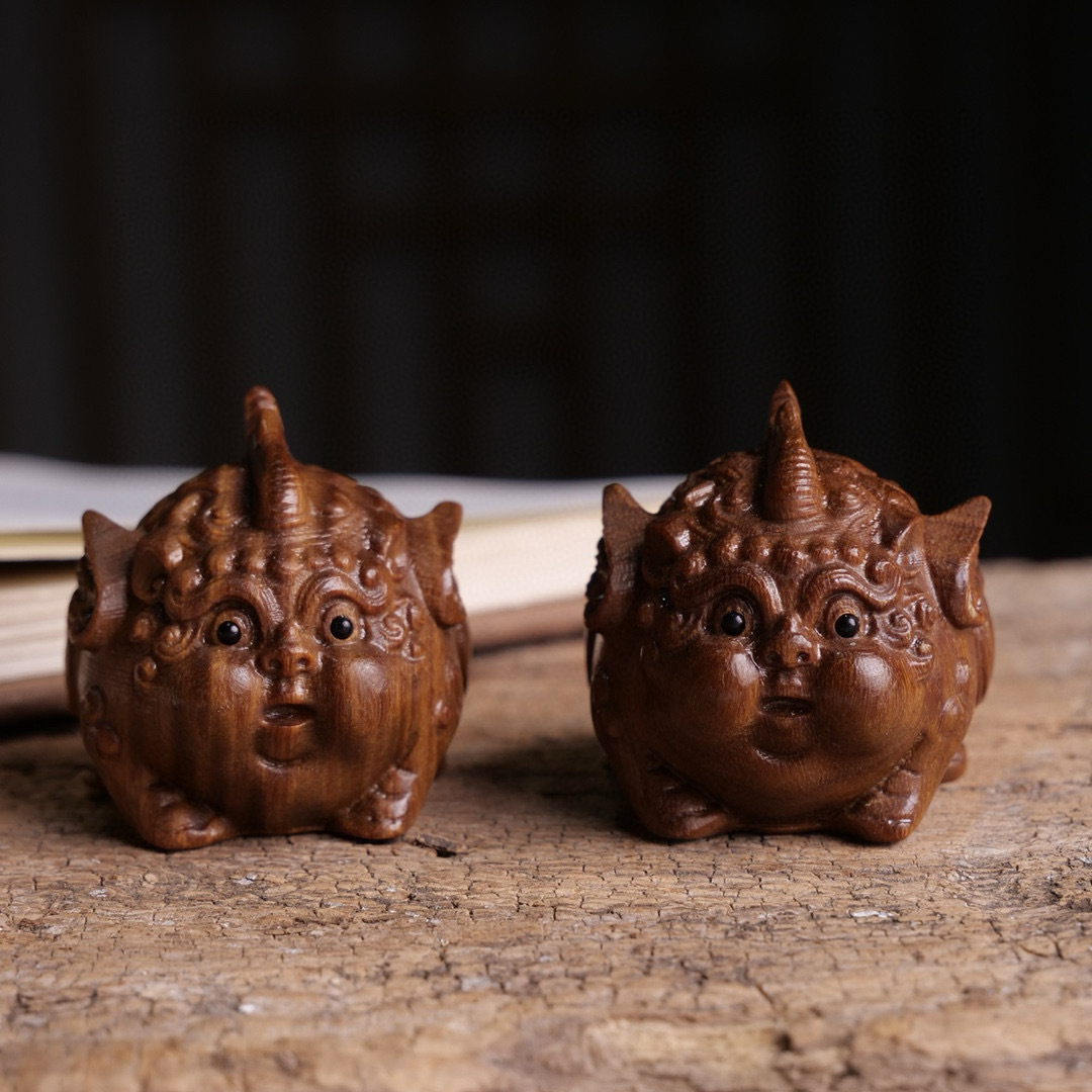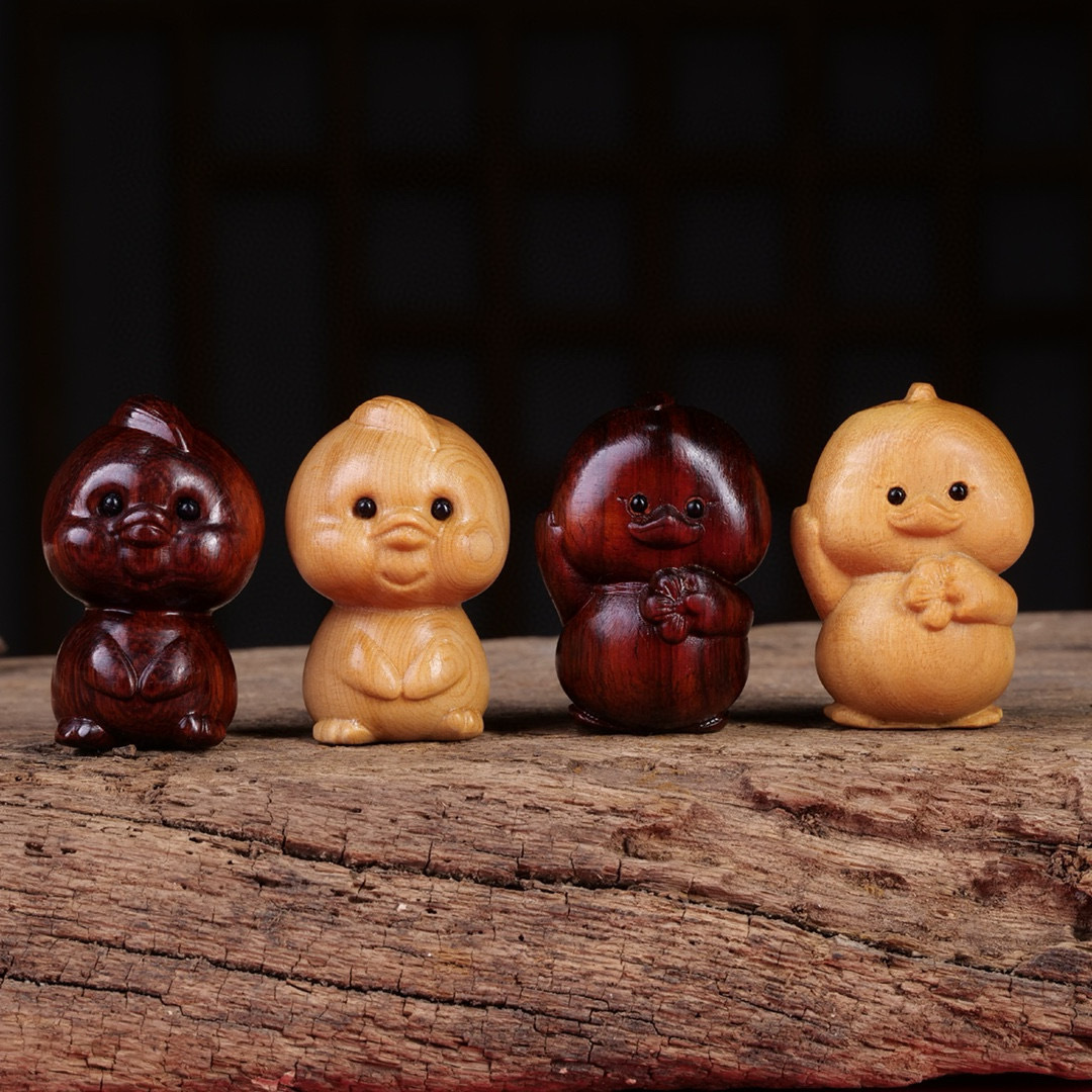 サイの紫檀の黄楊の木の彫刻のアイデアのひよこは木の彫刻の工芸を飾ってデスクトップの小さいアクセサリの装飾の文を組み合わせます。