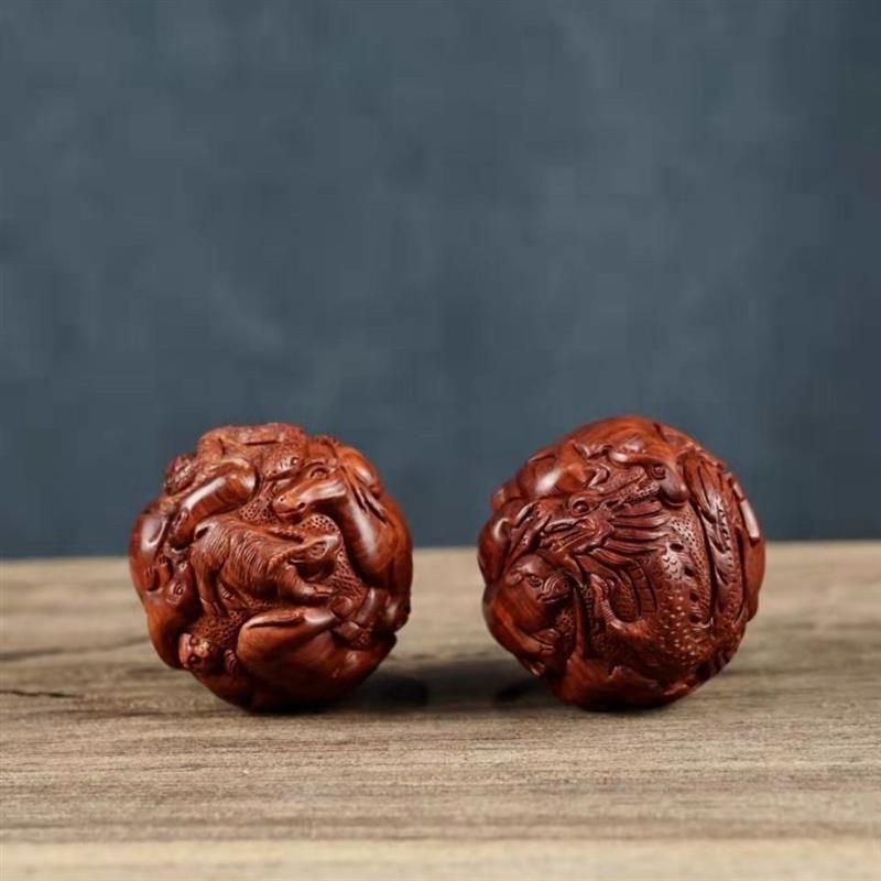 ラオスの黄花梨の十二生肖の文はクルミのハンドボールを遊んで彫刻します。