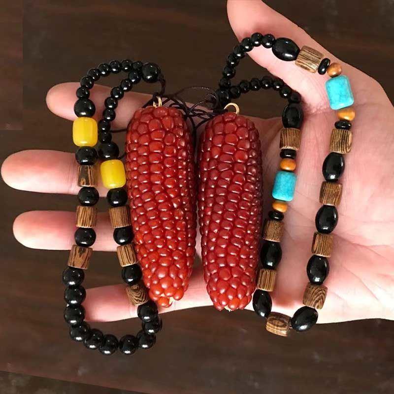 文はトウモロコシの取っ手の件の天然のミニの超小さいトウモロコシのペンダントを遊んで瑪瑙の赤い皿を持って小さいトウモロコシの卸売りを遊びます。