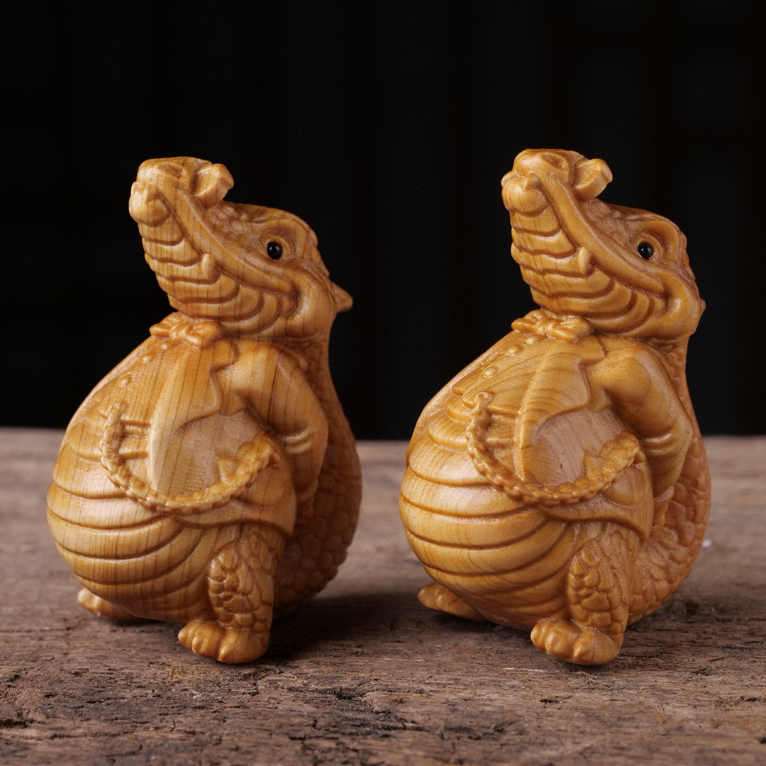 虎牛鼠兎龍蛇馬羊猿鶏犬豚工芸崖柏木彫刻十二生肖置物ハンドル