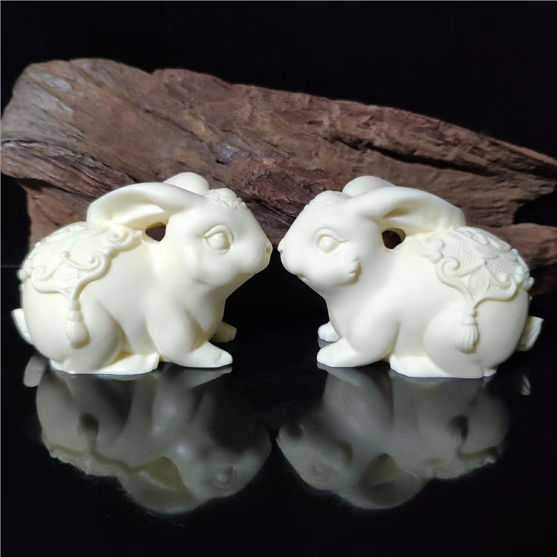 象牙の実の彫刻の肖のウサギの玉のウサギの福の字の家庭のデスクの工芸品のアイデアは車の内装の飾り物を飾っています。