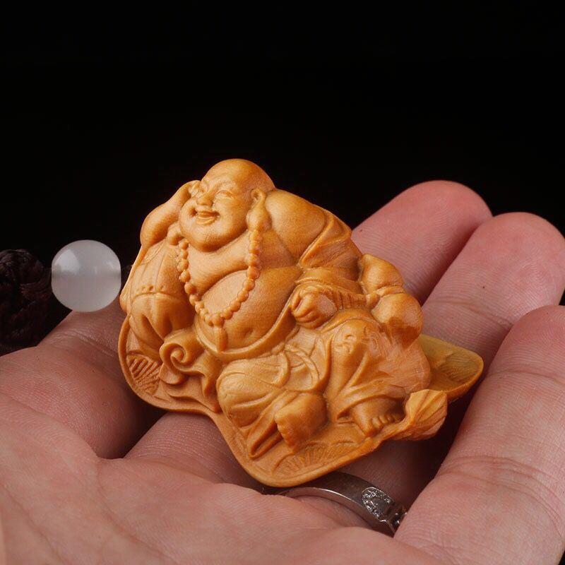 黄楊の木彫りの文は手の取っ手の仏像の実木の彫刻を遊んで男の自動車のペンダントを遊んで笑います。