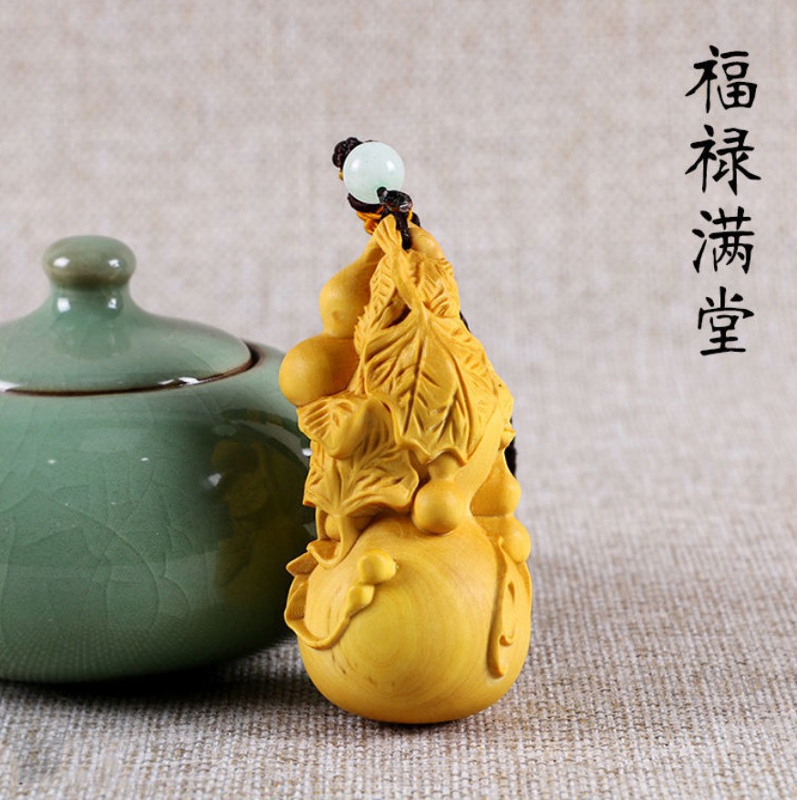 販促小葉黄楊木彫りのハンドルの彫刻工芸品の実木はアクセサリーのペンダントを遊んでプレゼントのヒョウタンを遊びます。