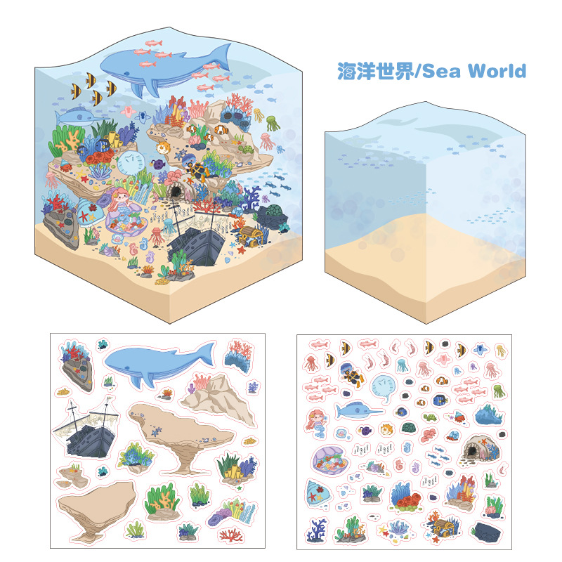 子供の 3D 立体造園ステッカークリエイティブシーンミニチュア世界 diy ステッカーコラージュペット素材早期教育減圧