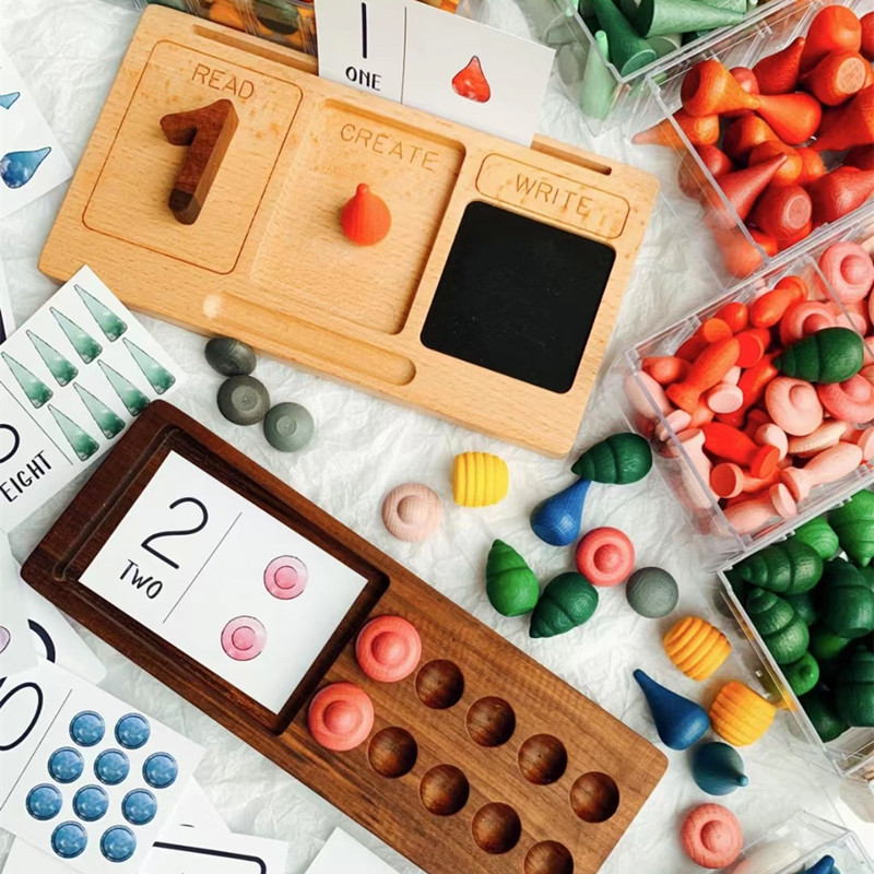 子供木製両面筆記練習板幼稚園赤ちゃん啓蒙早教認知数字漢字蒙氏教具