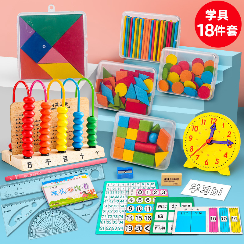 木製小学校一年生の教具数学計数円片幾何学片数棒時計模型幾何学体教具