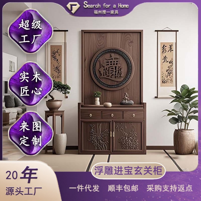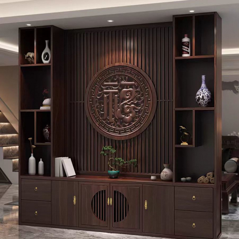 玄関戸棚新中国式実木入戸仕切り間ホール戸棚客間屏風門門下駄箱一体家庭用ホール戸棚