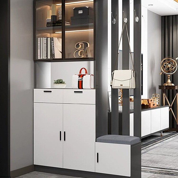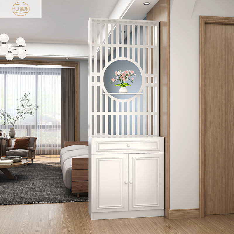 玄関キャビネットの下駄箱一体現代シンプルなキャビネットの入り口に入ると、豪華な木造家庭用の玄幻キャビネットの屏風がリビングルームを遮断します。