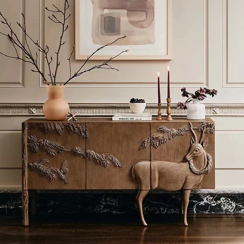 フランス式の木造の彫刻のレトロな玄関の戸棚のアメリカの田舎のホールの食事のサイドの戸棚の民宿の装飾のデザイナーの寂しい風