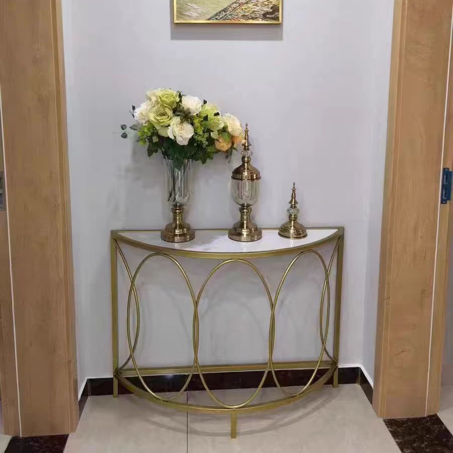 北欧の簡単な半円の玄関のテーブルは壁の大理石に寄りかかって軽くて豪華な家に入ります。