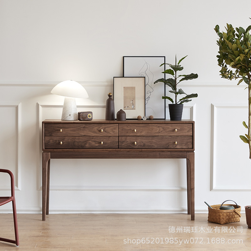 北米黒胡桃木全実木玄関キャビネット北欧シンプル高足キャビネット新中式ドアホールサイドキャビネット高脚テーブル