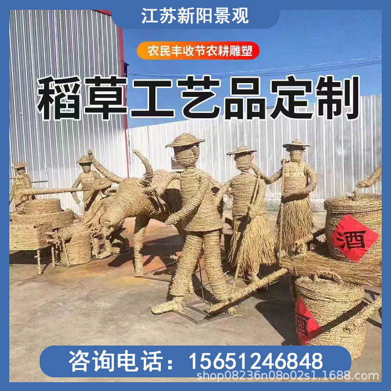 草の縄を作ってかかしのダミーの工芸品の人形を編みます。
