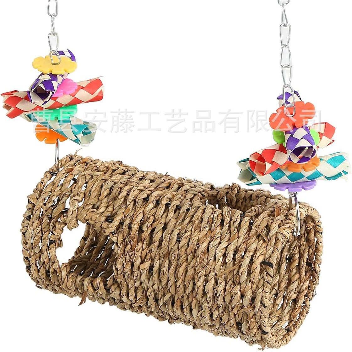 オウムのおもちゃ手作り草編トンネル玄鳳牡丹鳥のおもちゃ