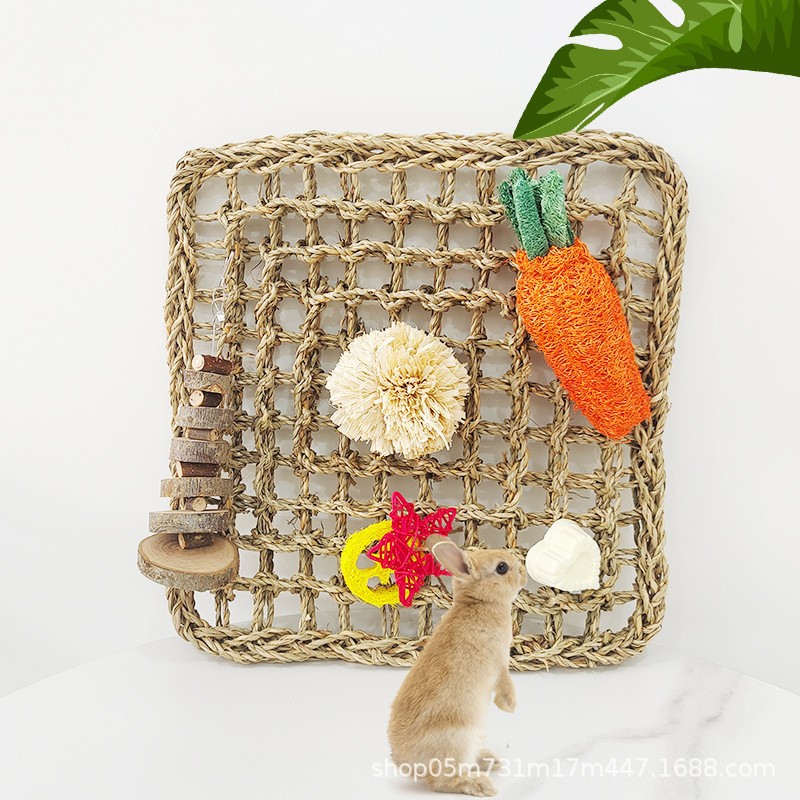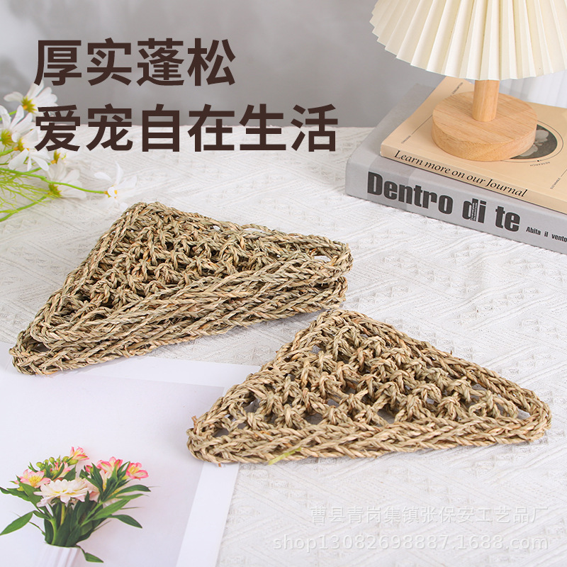手作り草編み三角マット吊りマットレス動物爬行マットオウムブランコ玩具家庭用猫磨きマット