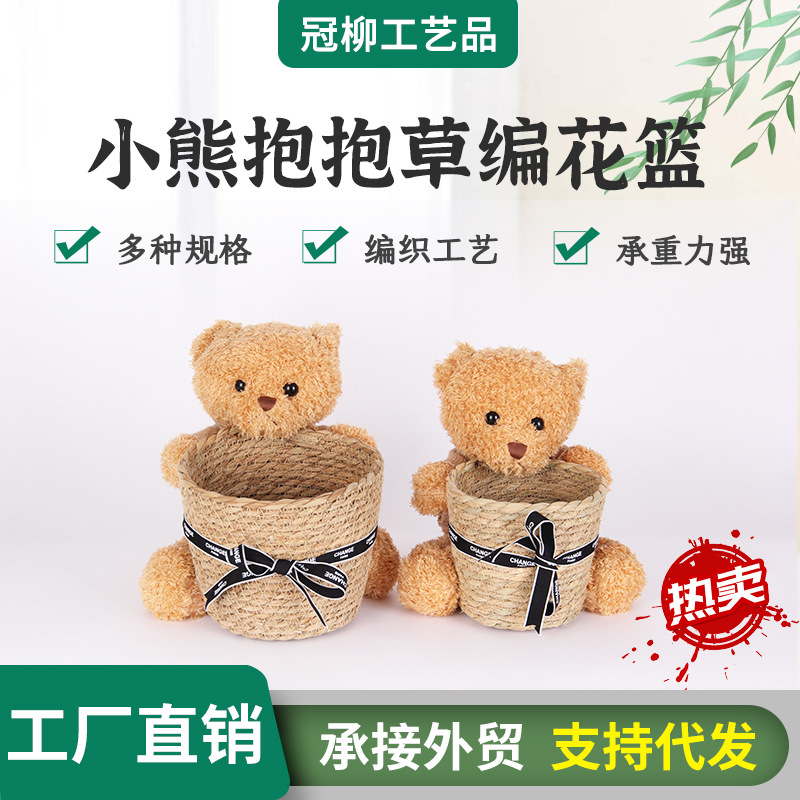 熊抱っこ草編み花籠栗熊抱っこ花籠抱っこ桶機織草編み花籠ネット赤熱売花籠