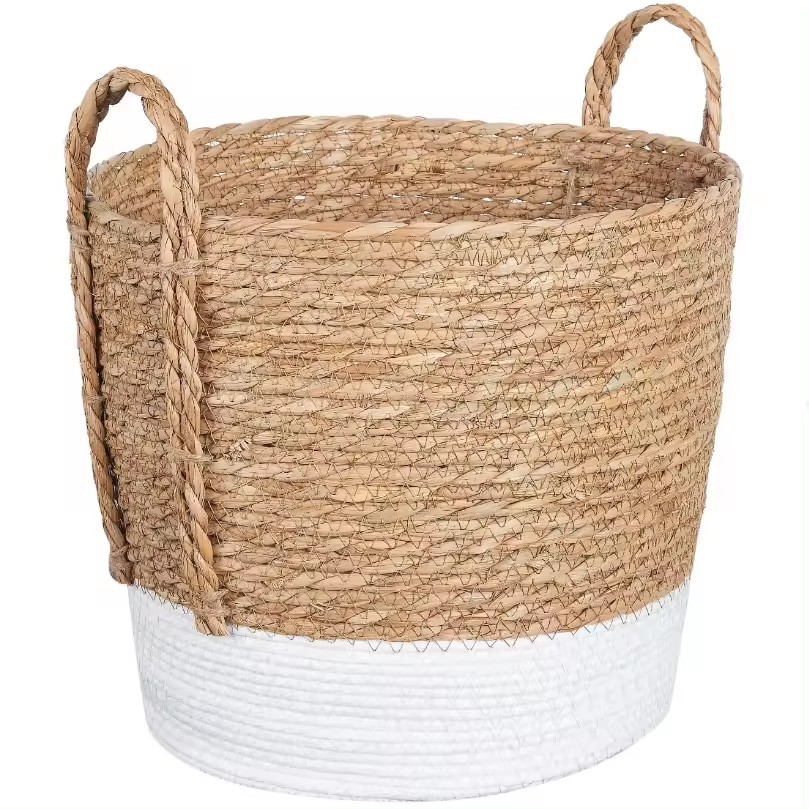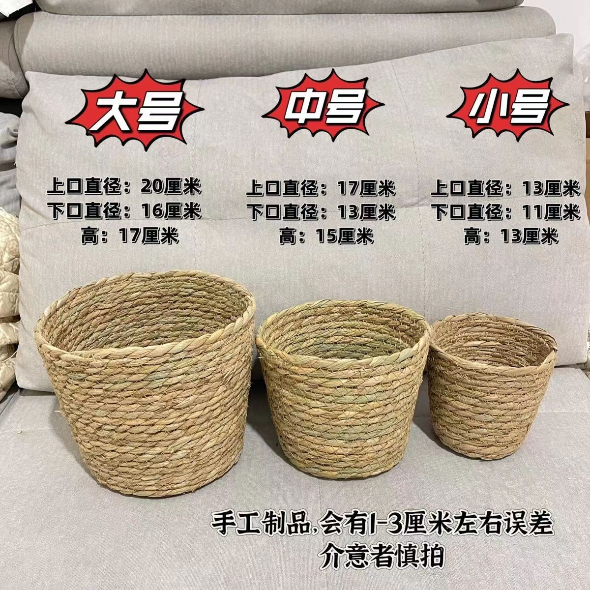 田園風海草編み手作り花かご取っ手付き藤編み飾り植木鉢大サイズ汚いかご服収納かご