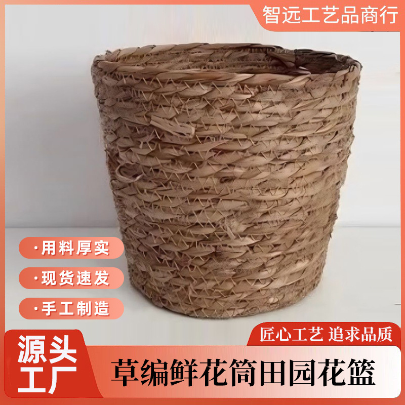 田園風海草編み手作り花かご取っ手付き藤編み飾り植木鉢大サイズ汚いかご服収納かご