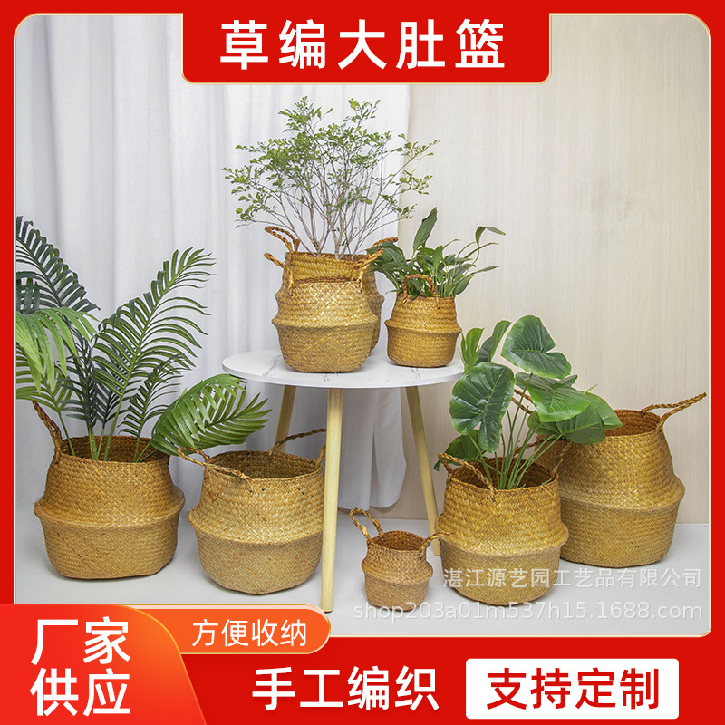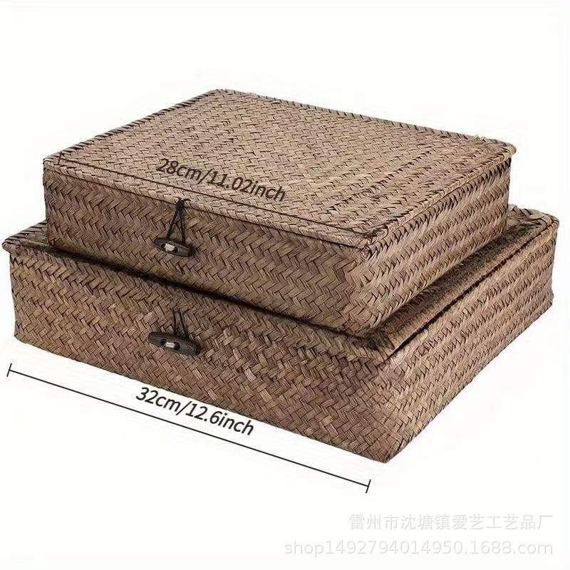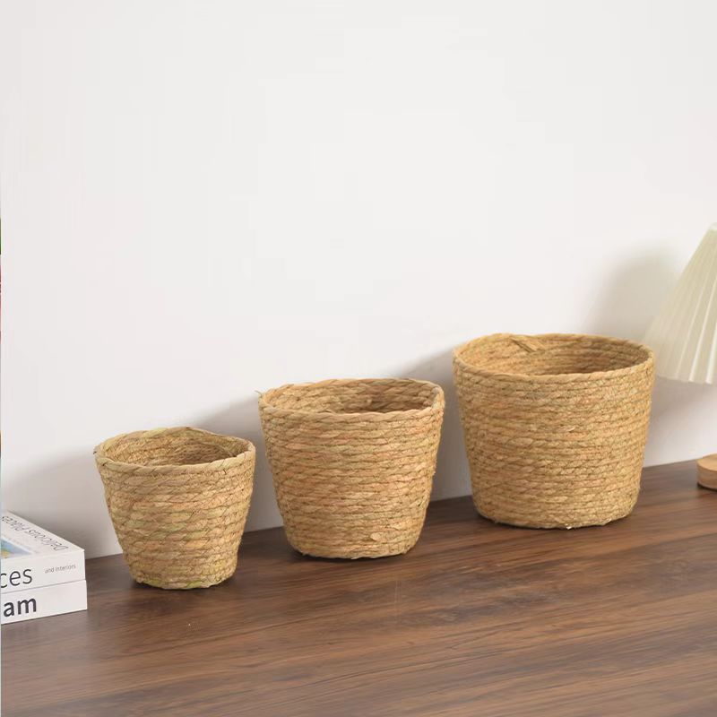 草编み海草収纳カゴ手编み収纳整理ケース化粧品置物収纳デスクトップ盖なし収纳