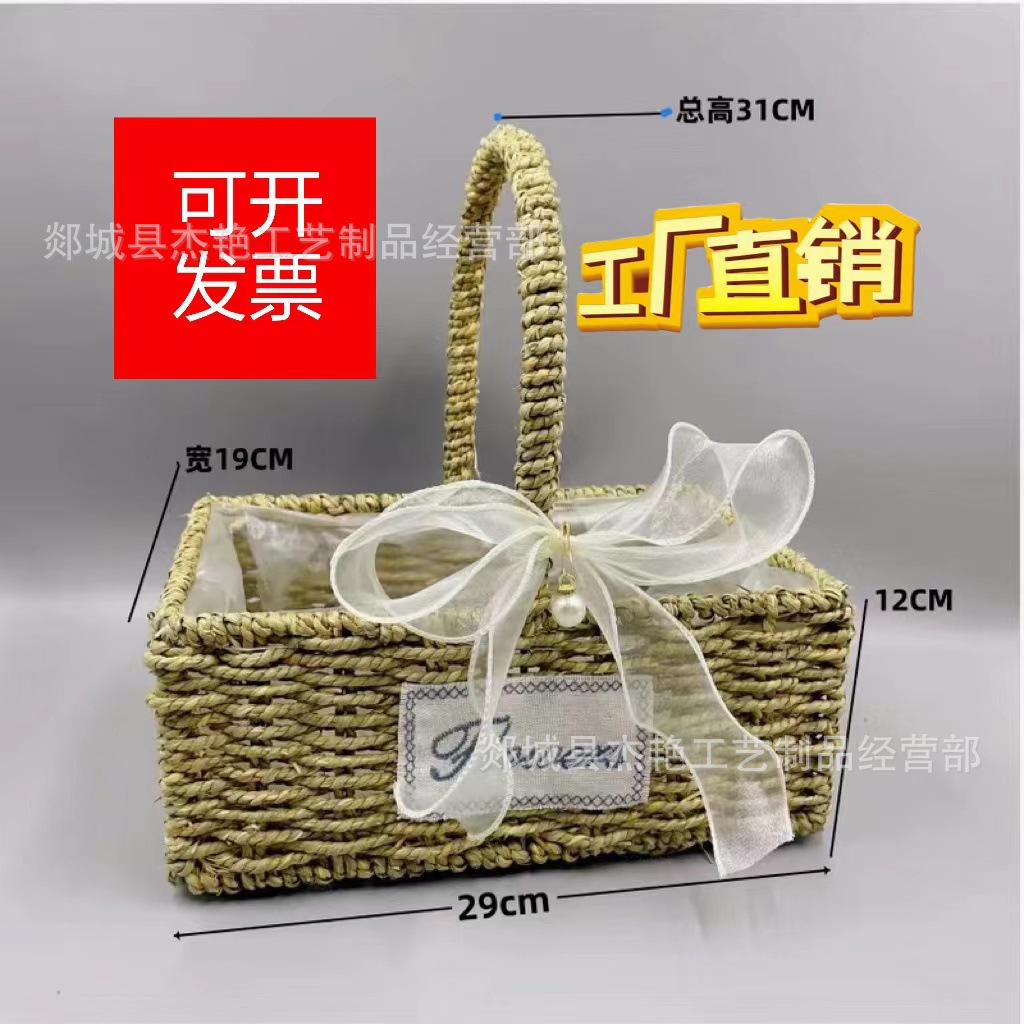 田園シミュレーション花造花花かご手作り草編み柳編み花かご生花多肉防水手提げ飾り花かご
