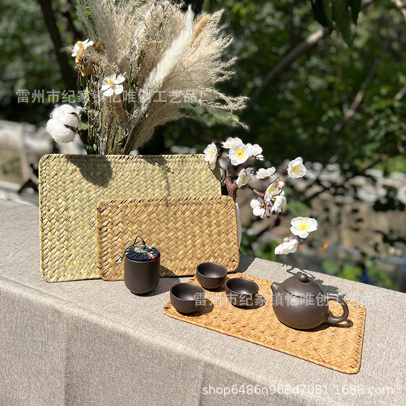 海草手編みパーマ防止食マットレトロ茶卓マット中国式シンプル草編み碗皿茶カップマット断熱マット
