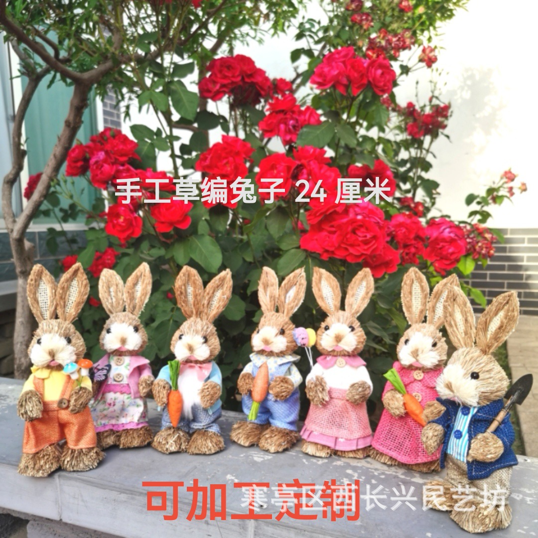 田園風草編み兎サブネット赤モデルピーター兎ミニ着衣兎手作り草編み誕生日プレゼント
