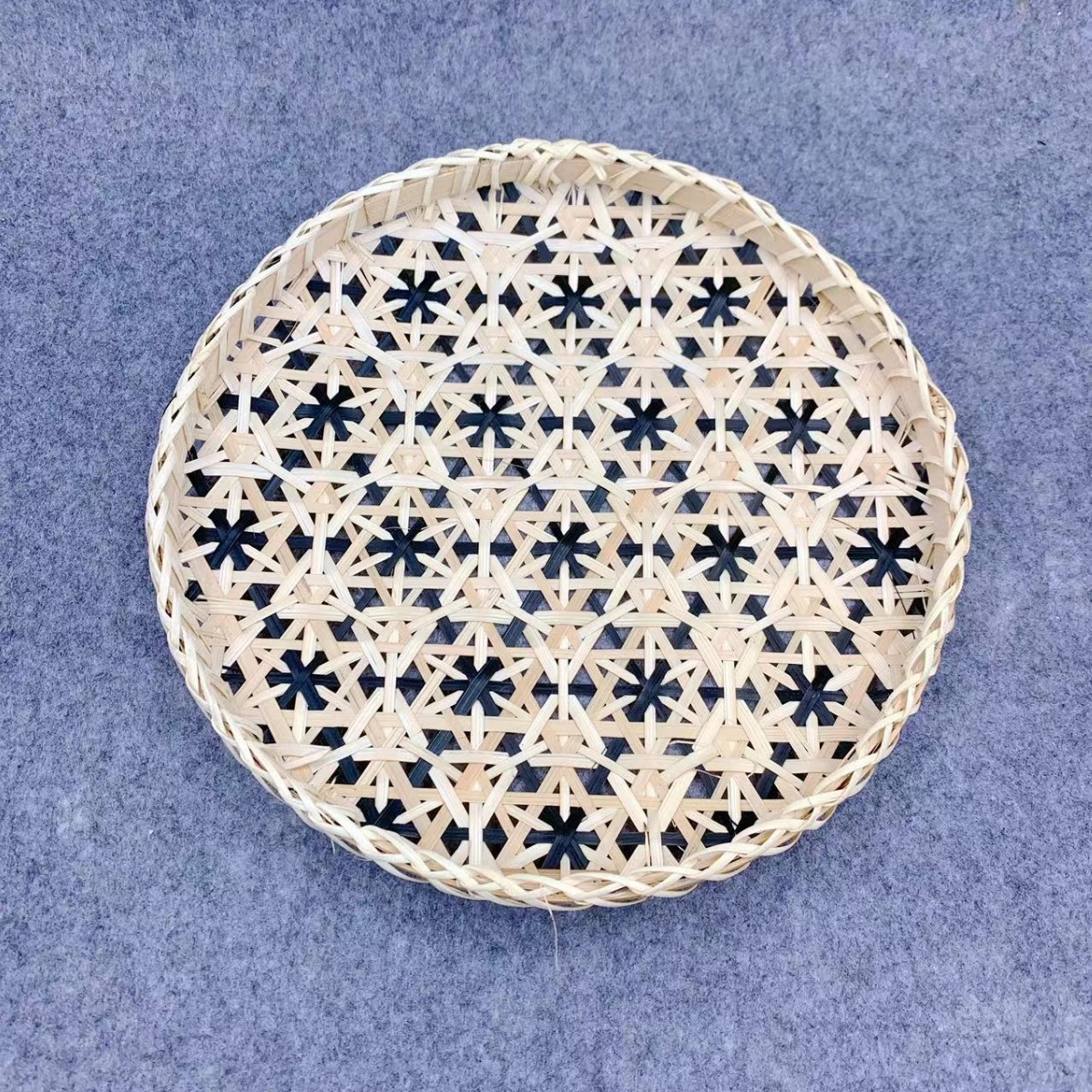 中国式竹編み手作り透かし編み円形プリントお菓子トレー壁掛け飾り断熱