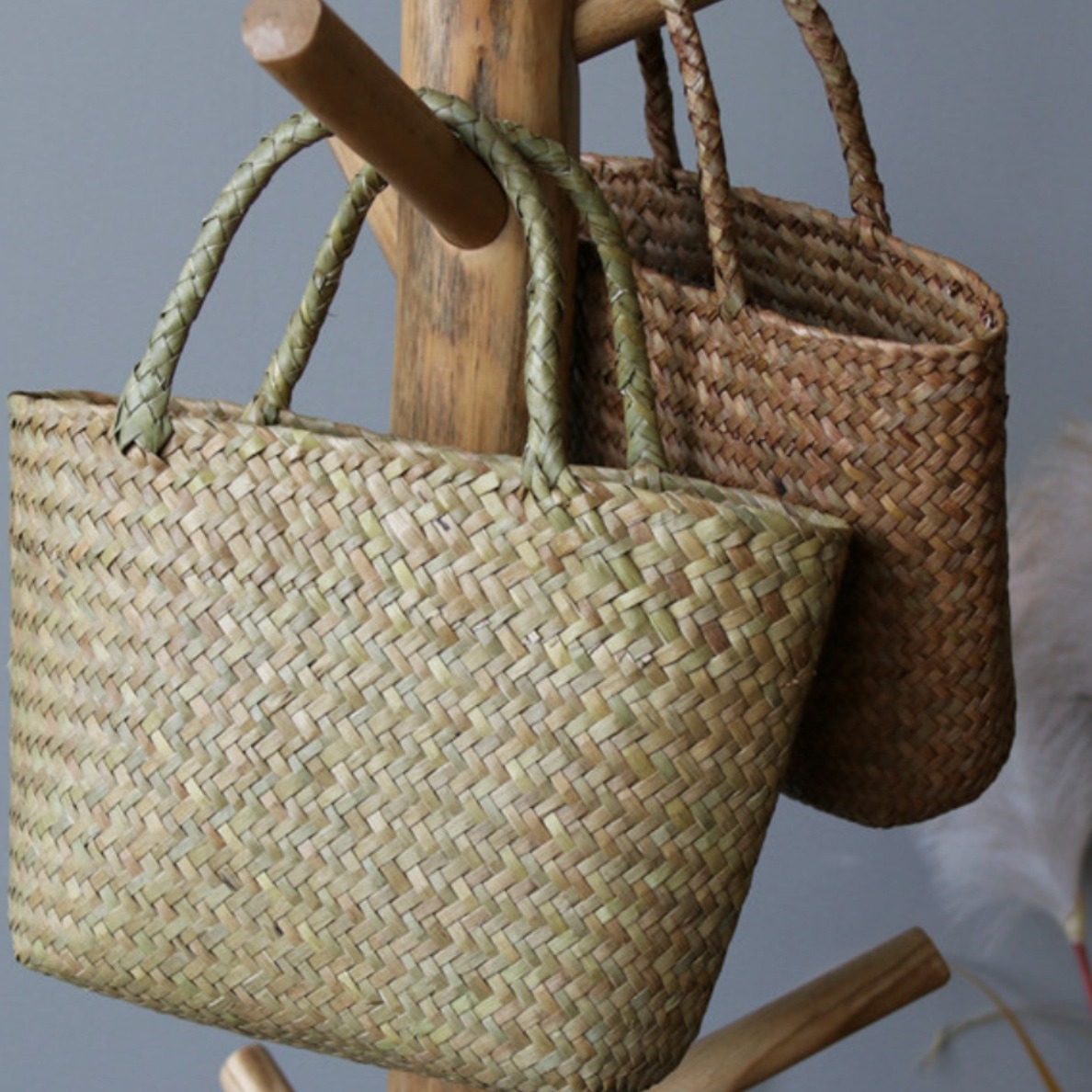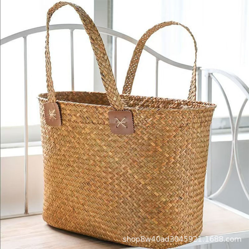 中秋の新型日本式海草編みかごレトロ草編み楕円大手提げかごアウトドア家庭用観光買い物かご