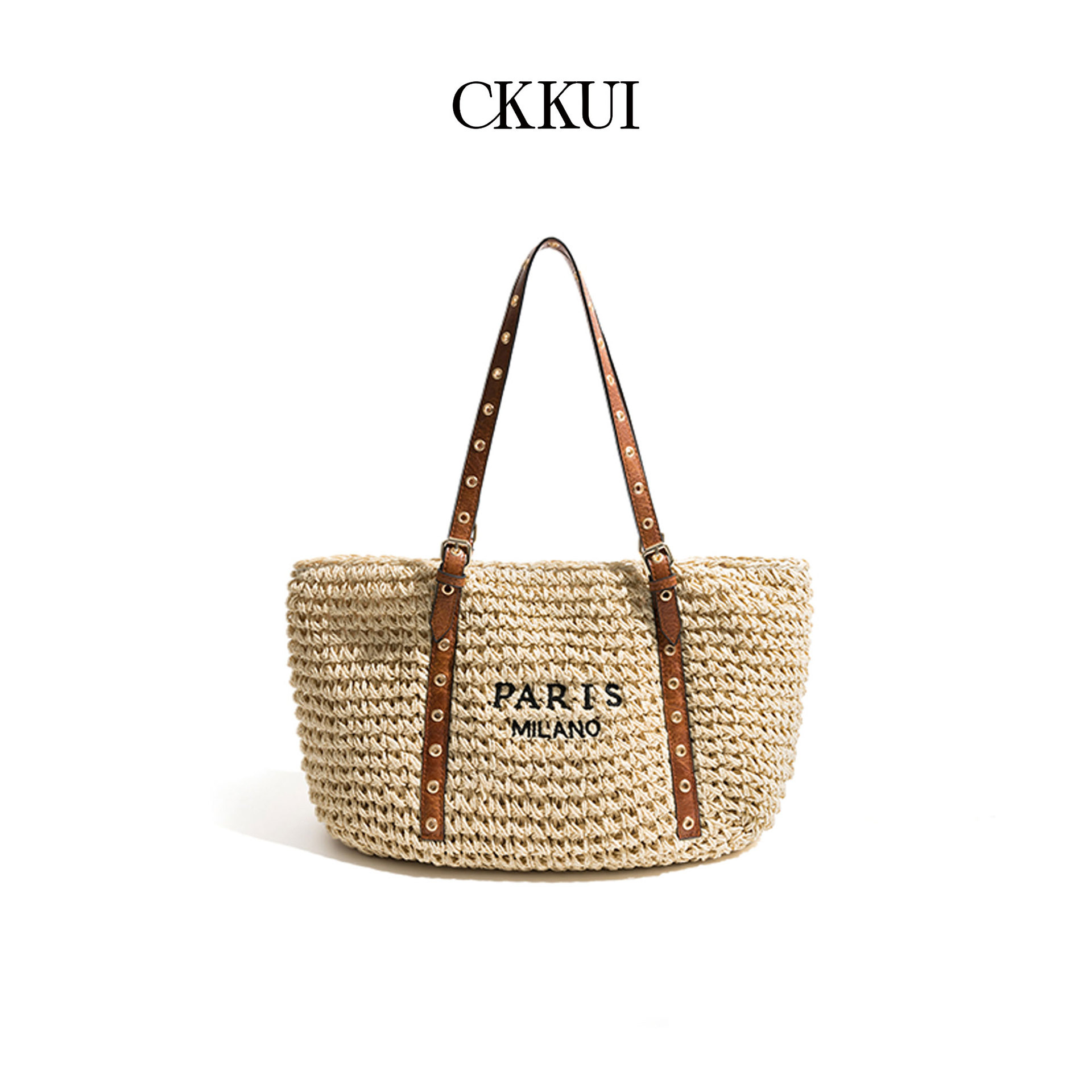 ネット紅新品春夏同品紙縄草編み特包欧米人工片肩手提げinsアルファベット編みバッグ